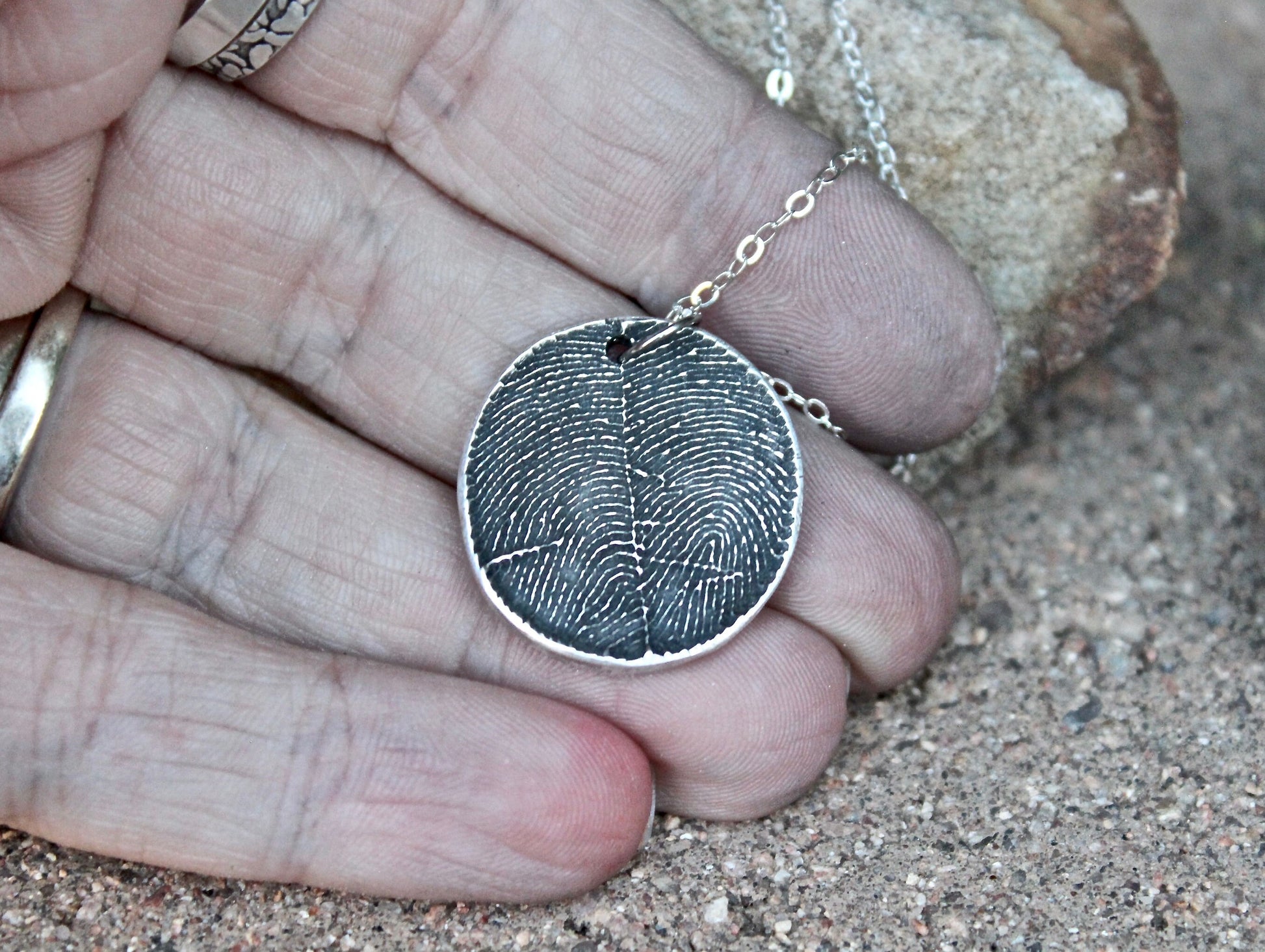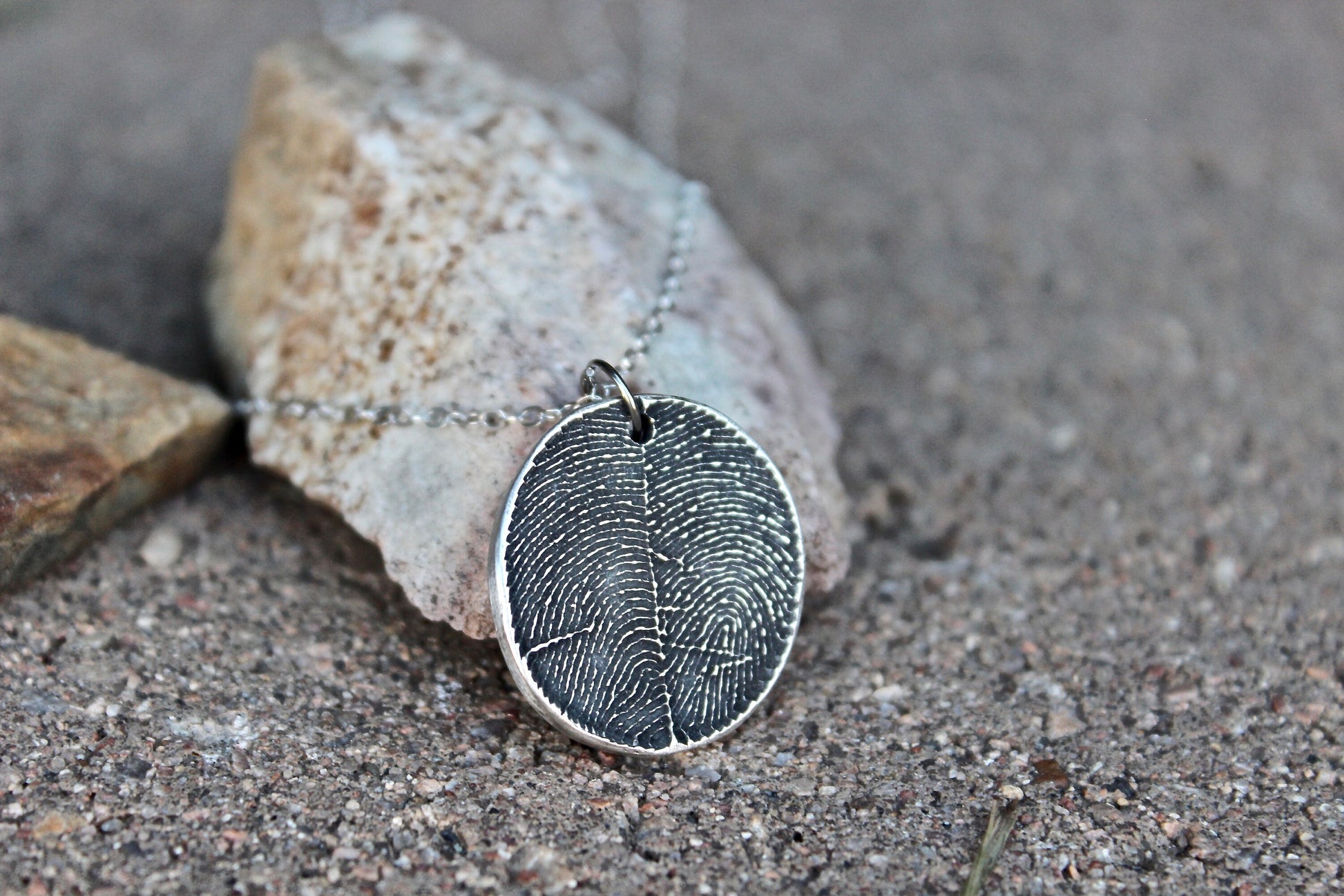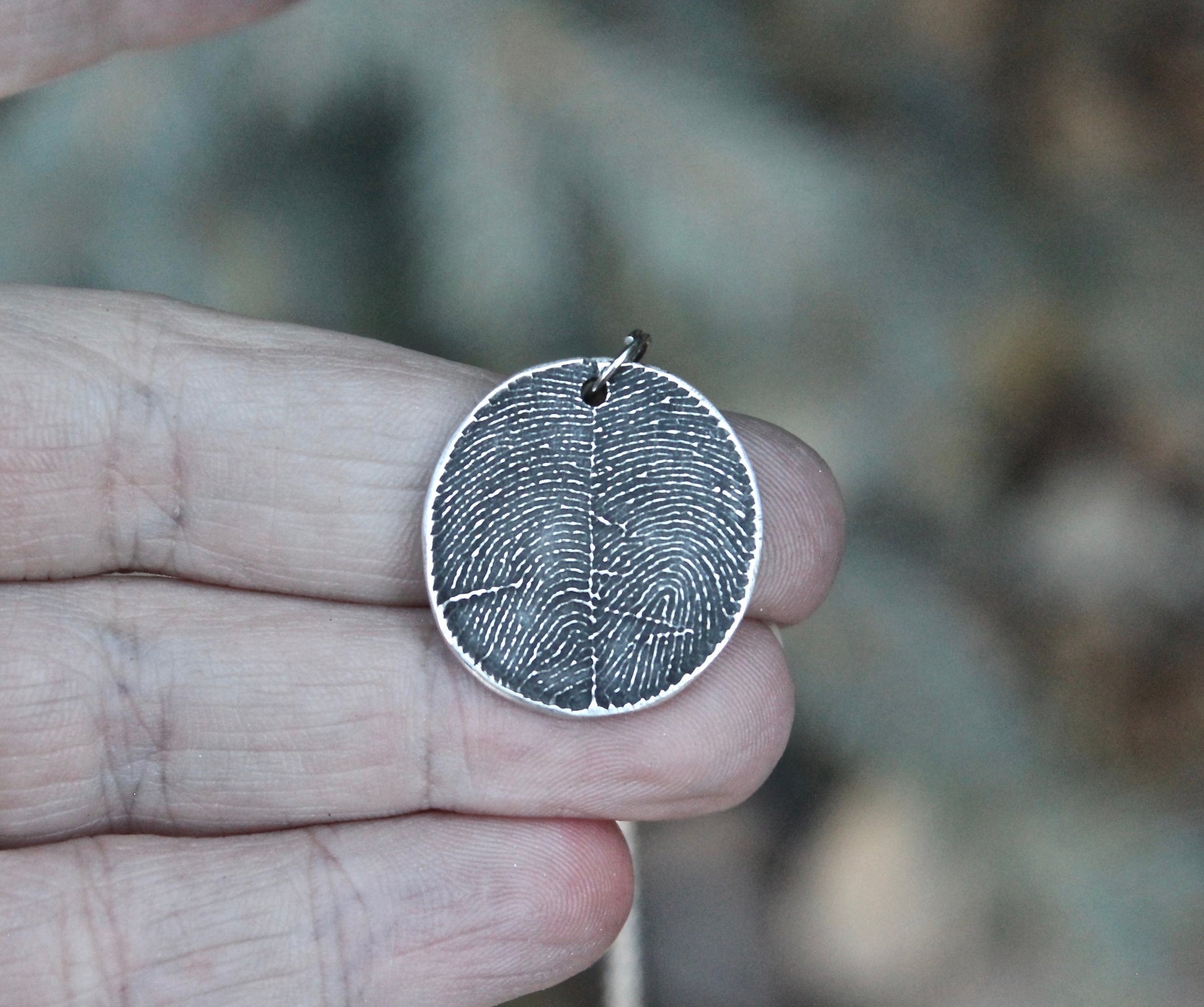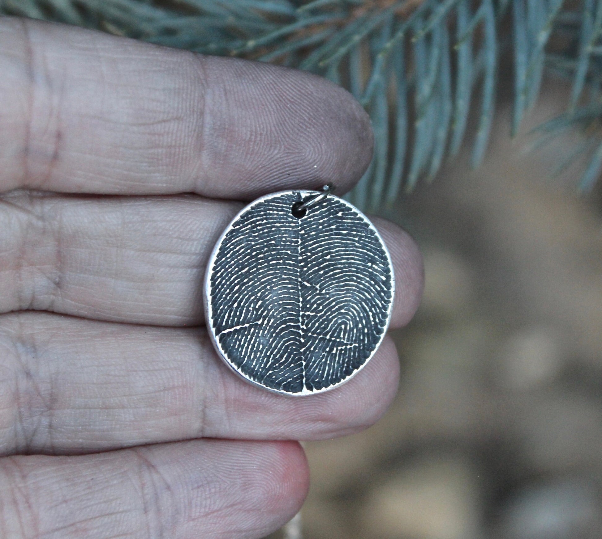 Keep your loved one with you wherever you are. This sterling silver charm is made with an impression of two fingerprints combined.