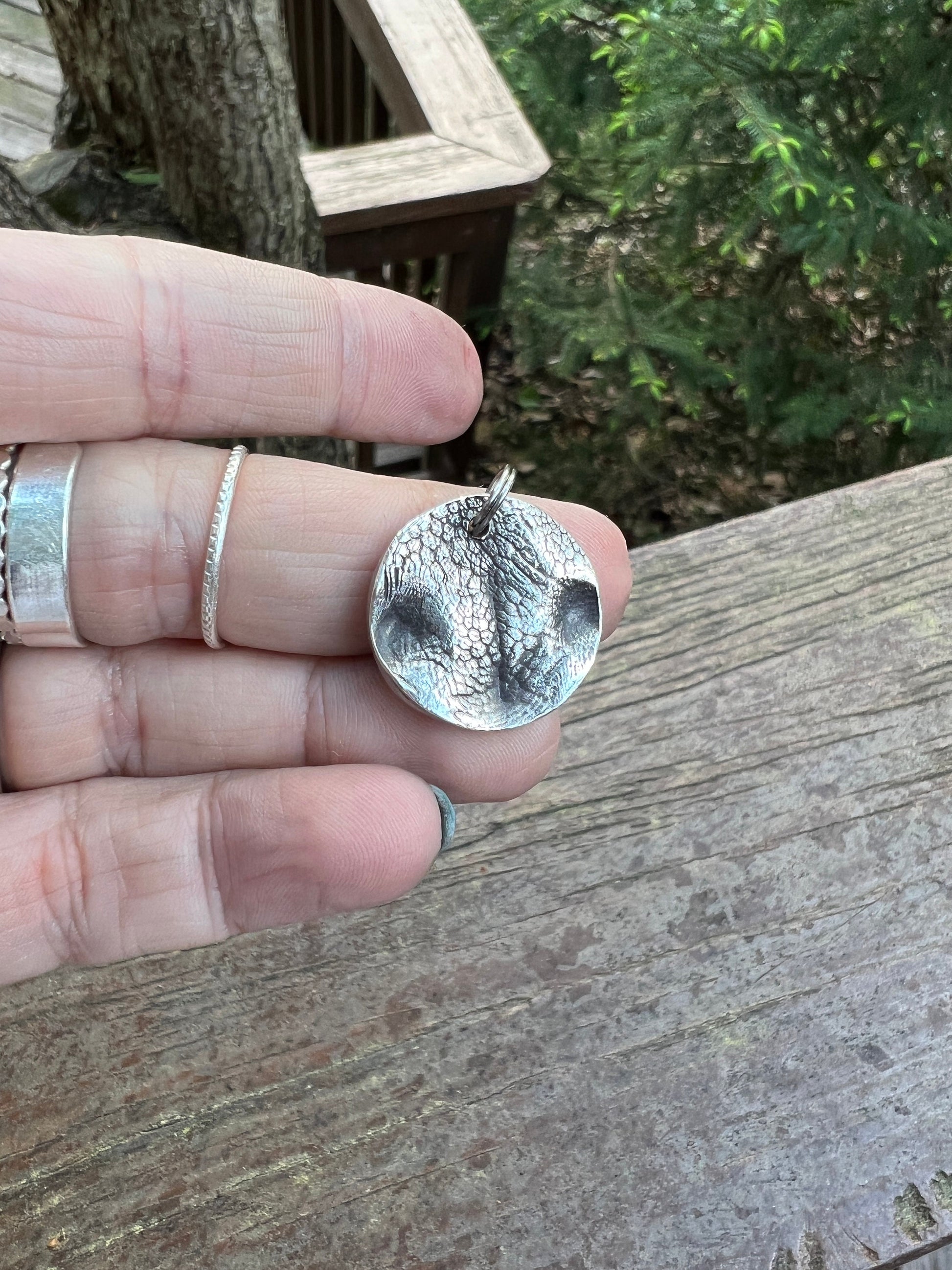 Nose print items will only have as much definition of the print as the buyer can provide with the mold of the print. Please keep this in mind when purchasing fingerprint or nose print jewelry/key chains. Fainter prints will be more difficult to transfer to the silver, although even if a print is fainter when captured in the silver, the shape/outline are all real and will be the impression of the fingerprint or nose print provided to me by the buyer, so the charm/key chain/ring will still have meaningful value.