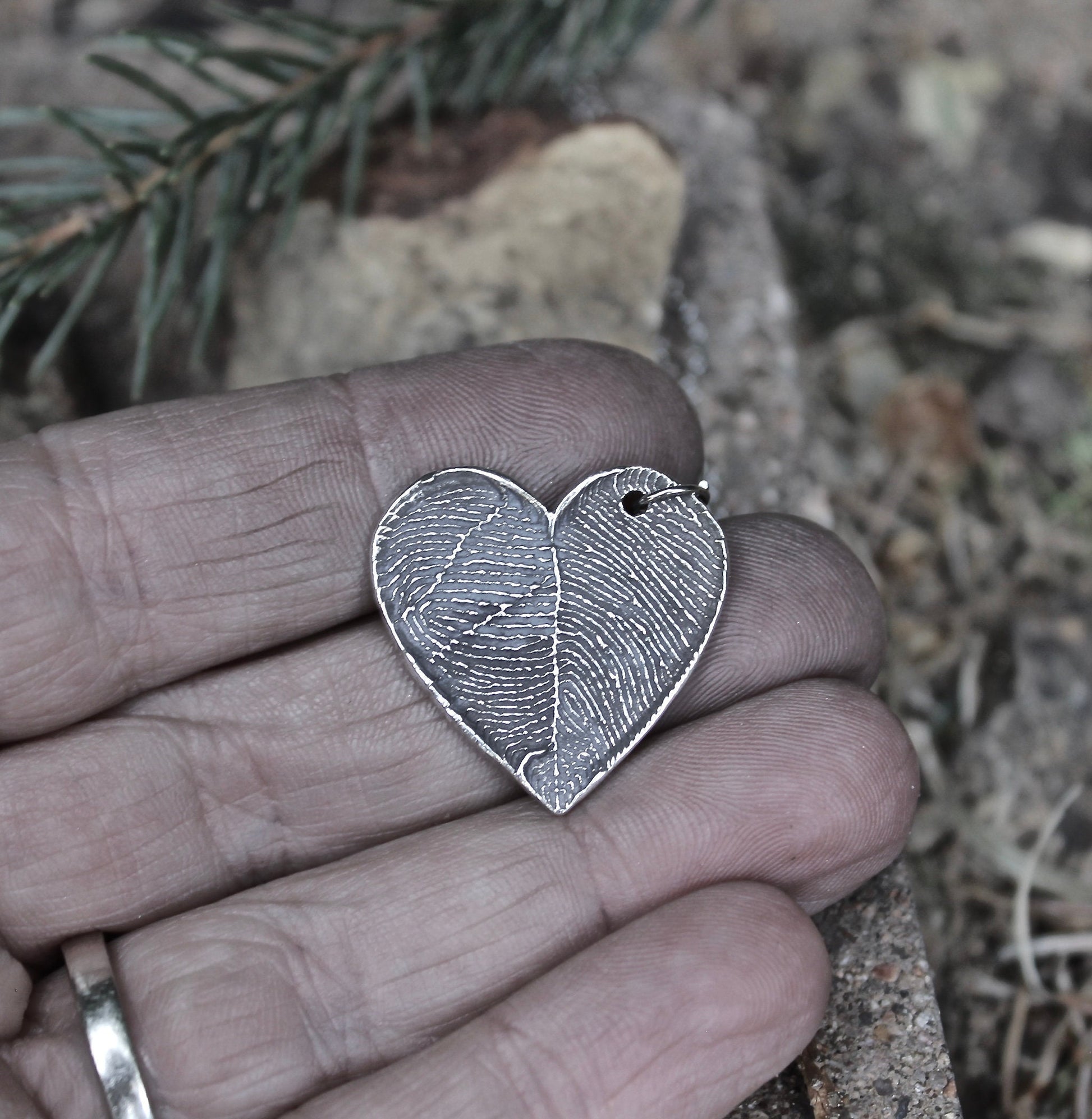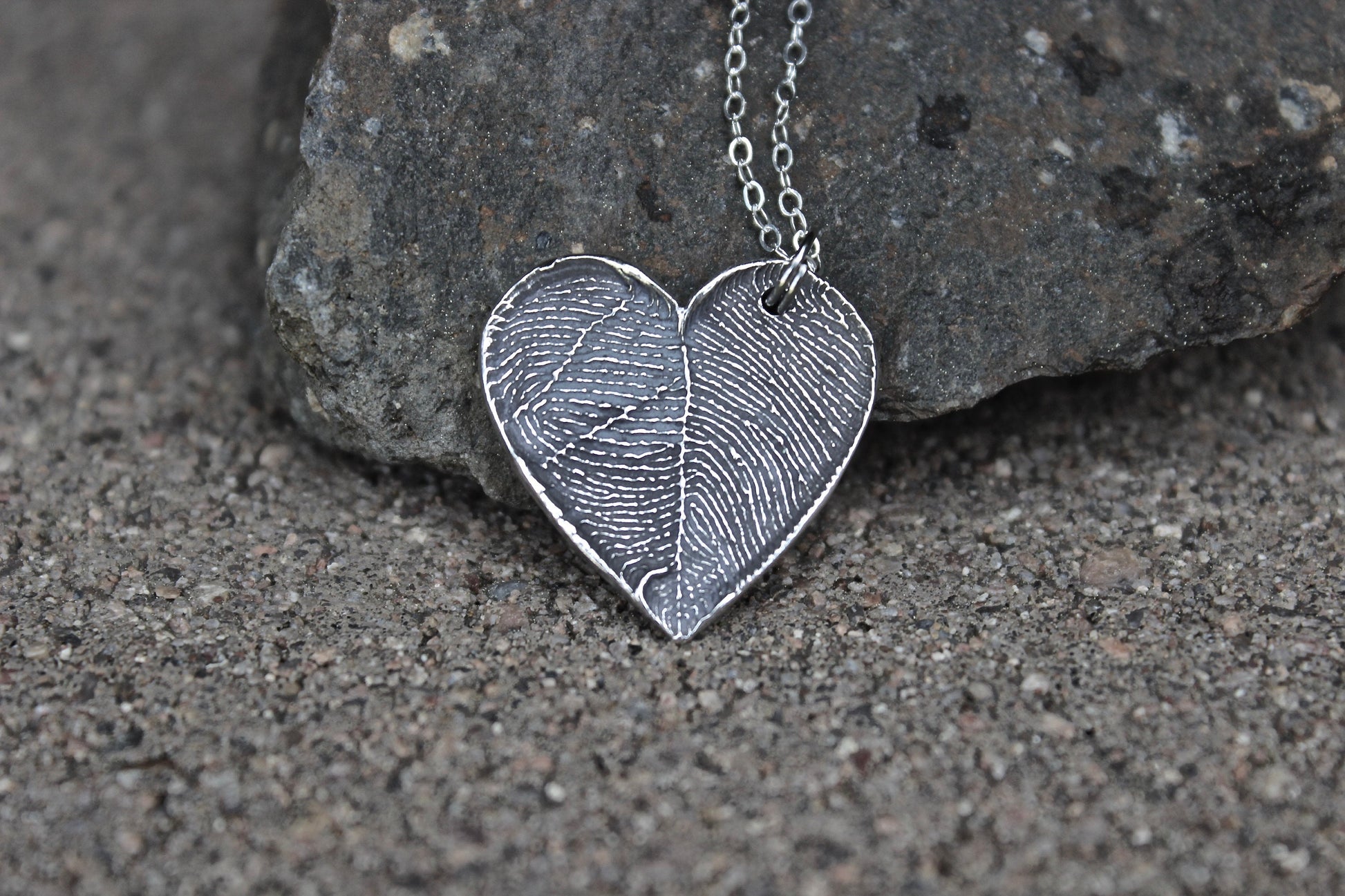 Two Fingerprints form a Heart Sterling Silver Necklace