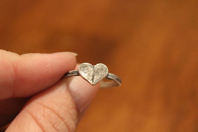 Keep the fingerprint of a loved one with your print at all times or the fingerprints of two loved ones forming a heart!