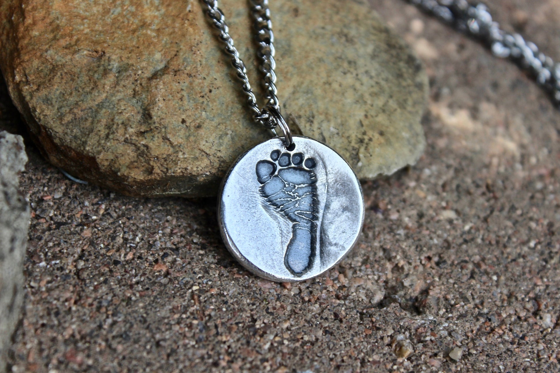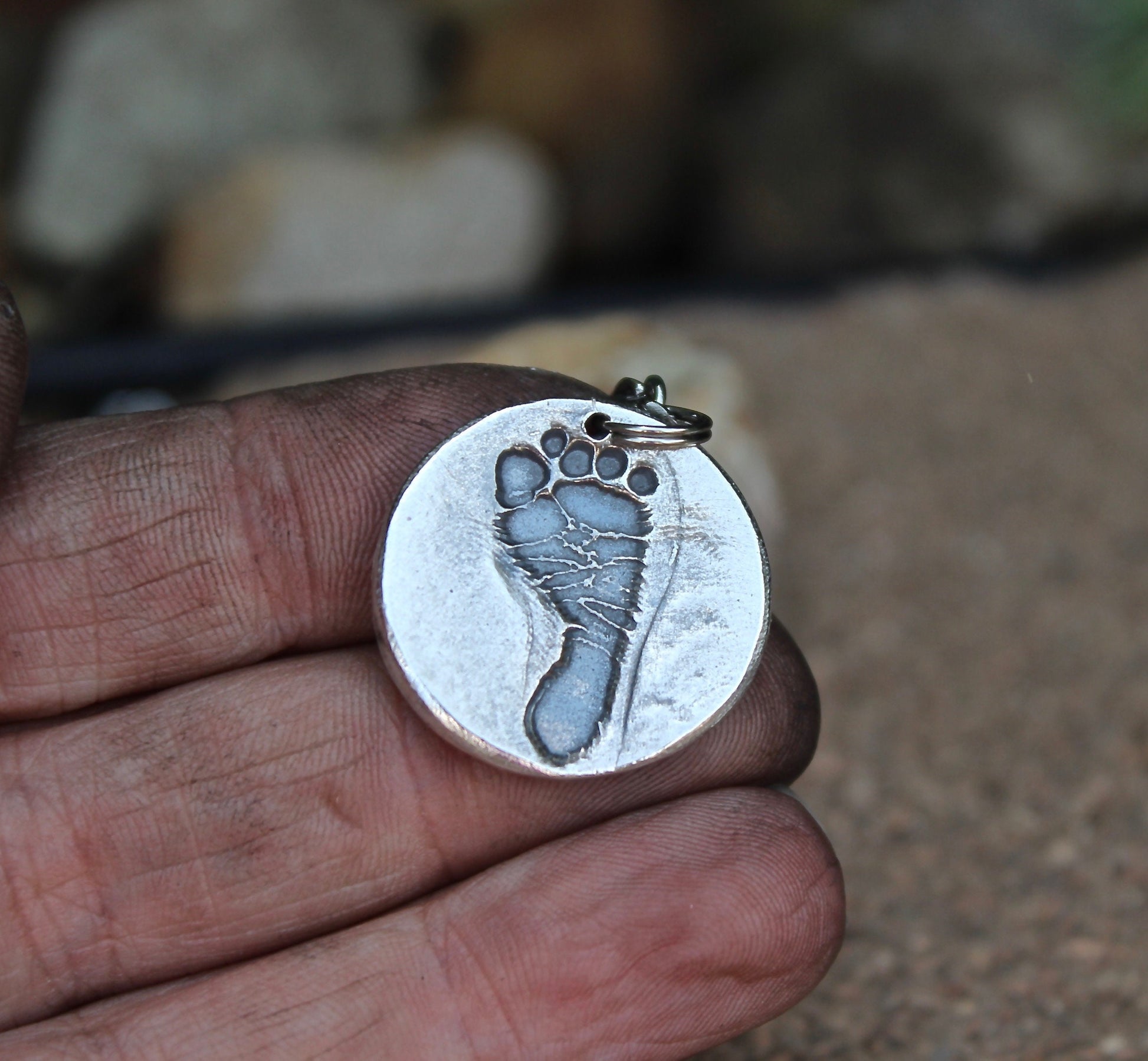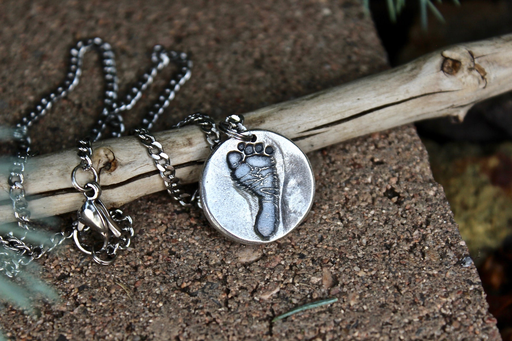 Capture the actual footprint of your baby with this real footprint charm necklace. Choose the perfect chain for dad or mom!