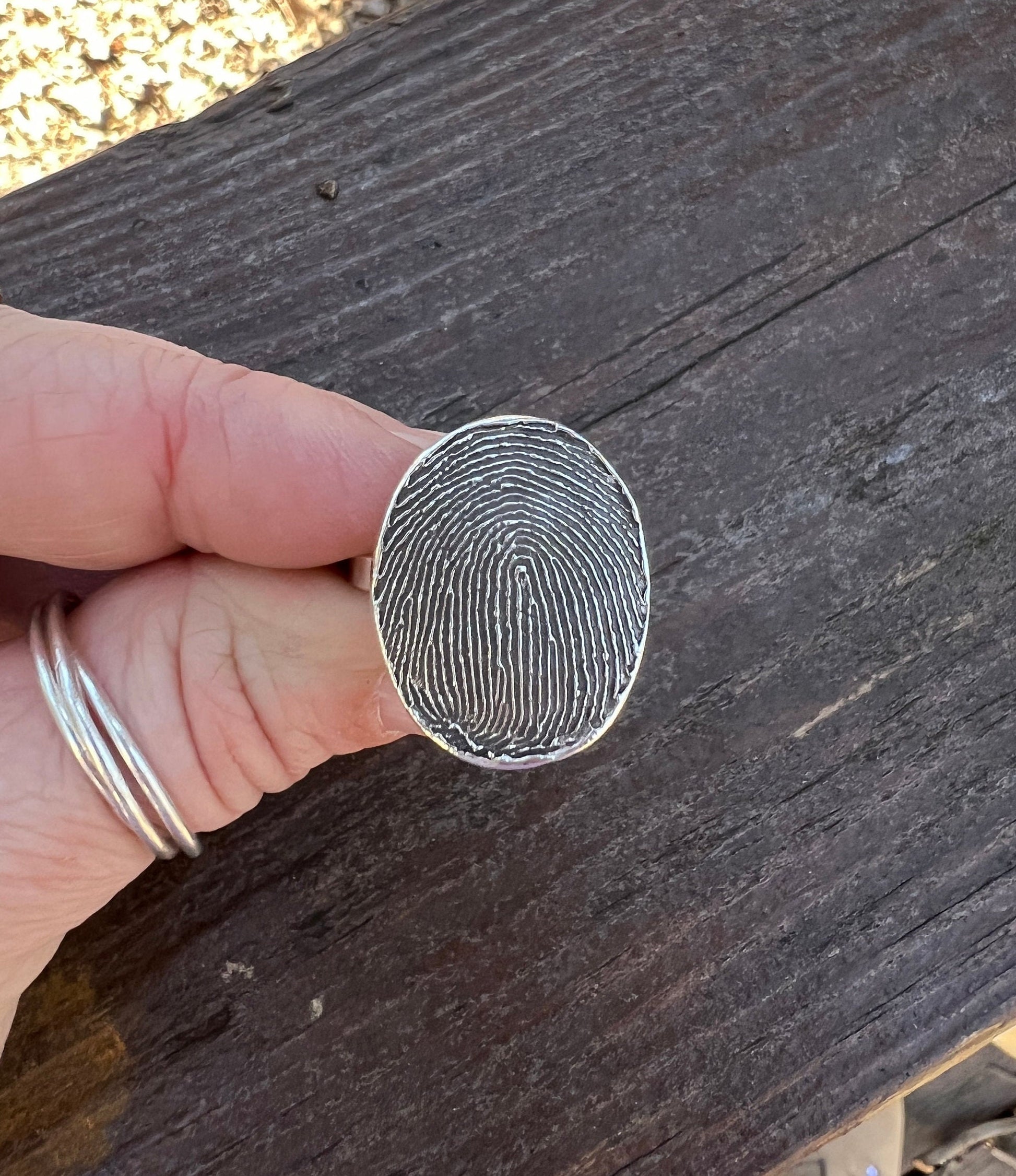 Simply drag and drop the fingerprint and/or handwriting file where it says "Drag & Drop Your Files or Browse" Or if you prefer to email the images, the email address is shop@carmellasjewelry.com and I will create this one of a kind item featuring the fingerprint and/or handwriting you provide. If you don't already have the fingerprint image, follow the below instructions.