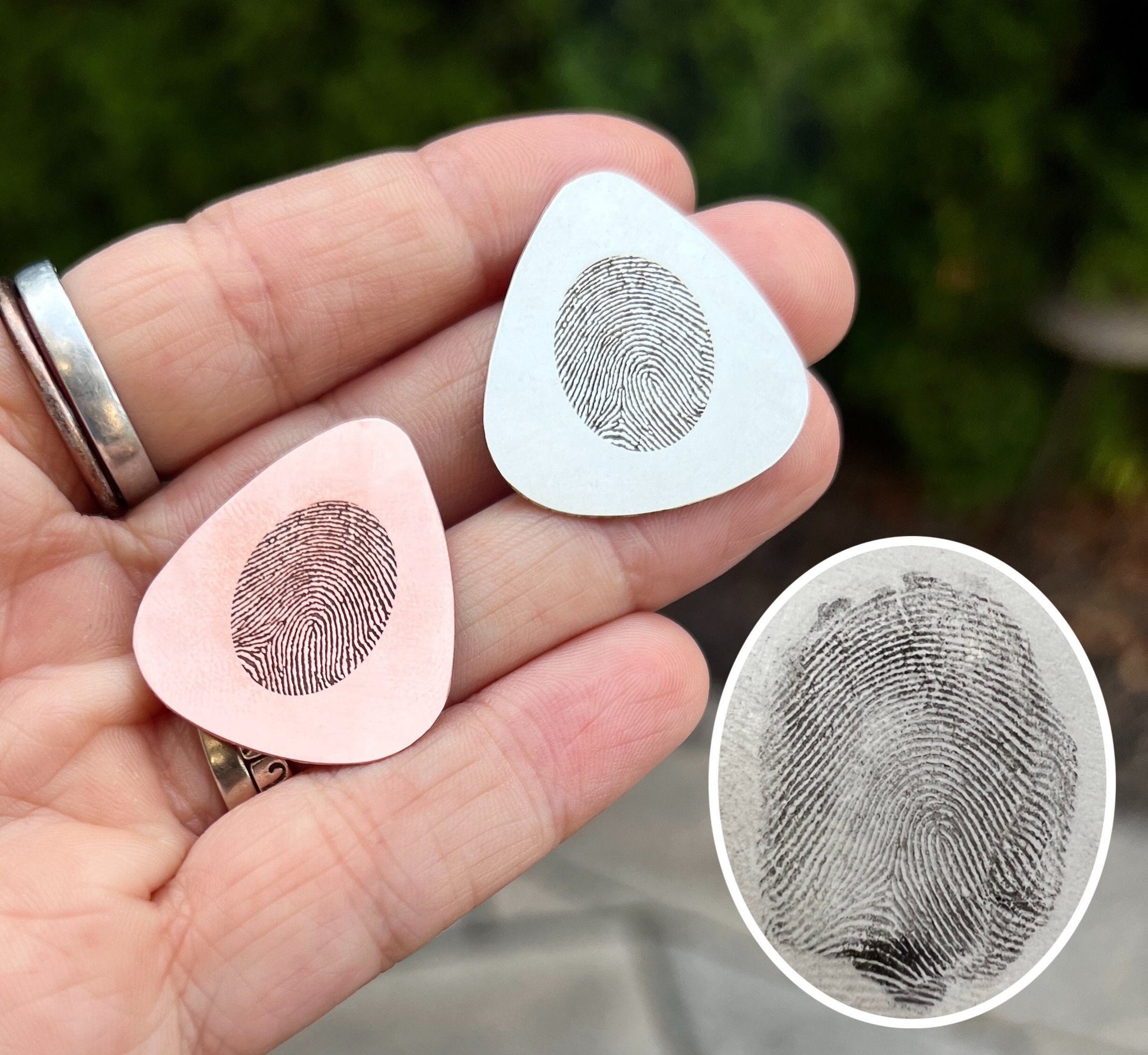 Simply drag and drop the fingerprint and/or handwriting file where it says "Drag & Drop Your Files or Browse" Or if you prefer to email the images, the email address is shop@carmellasjewelry.com and I will create this one of a kind item featuring the fingerprint and/or handwriting you provide. If you don't already have the fingerprint image, follow the below instructions.