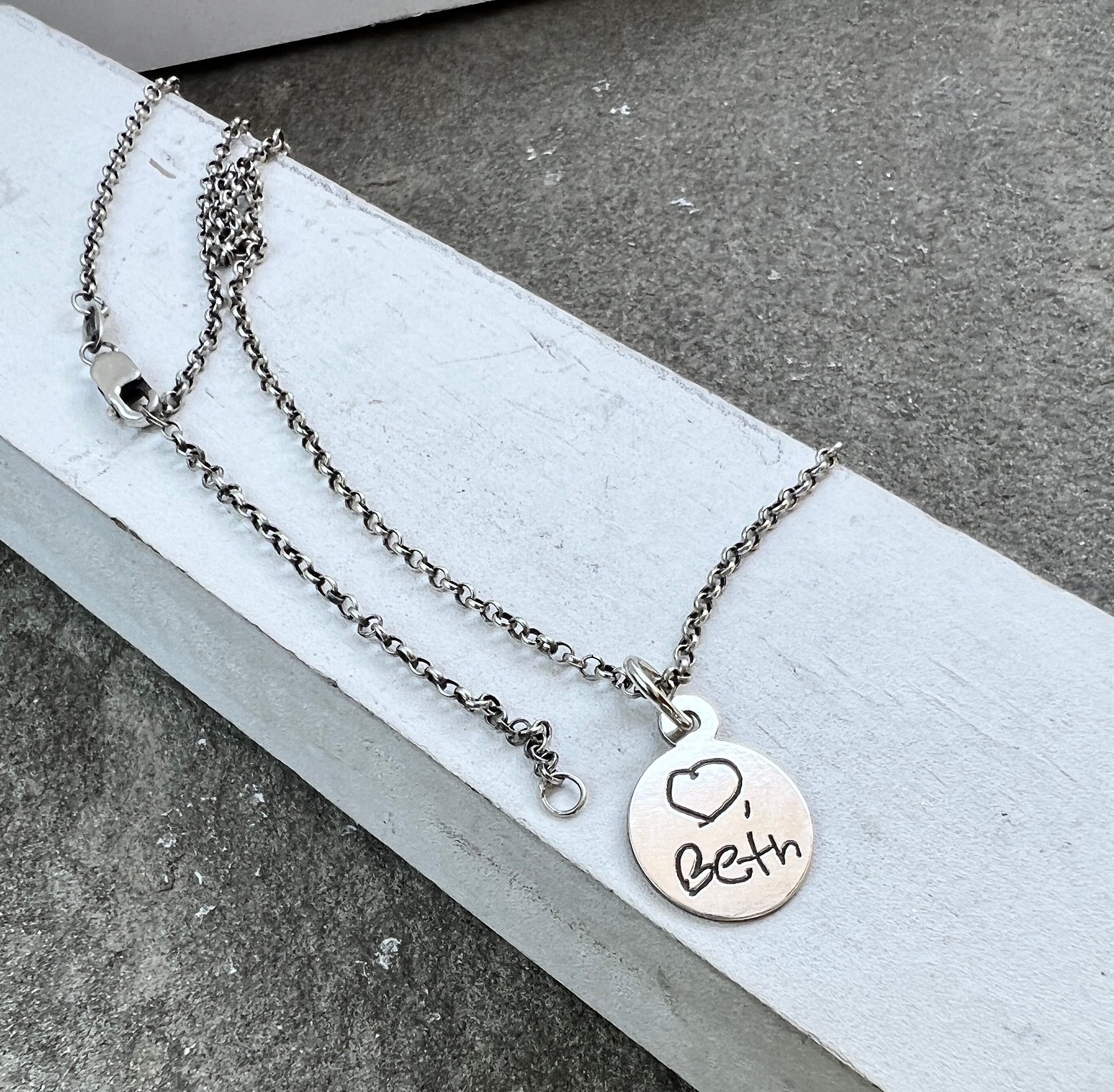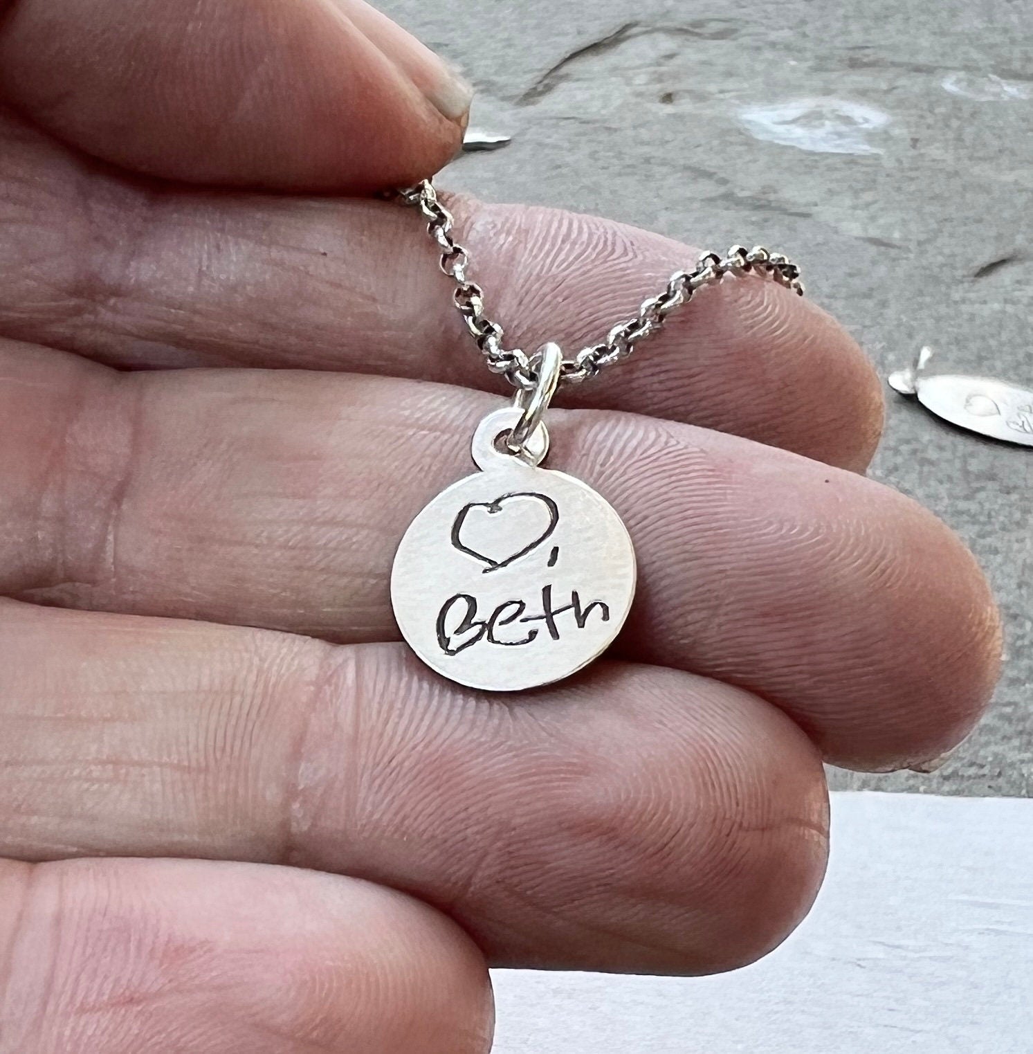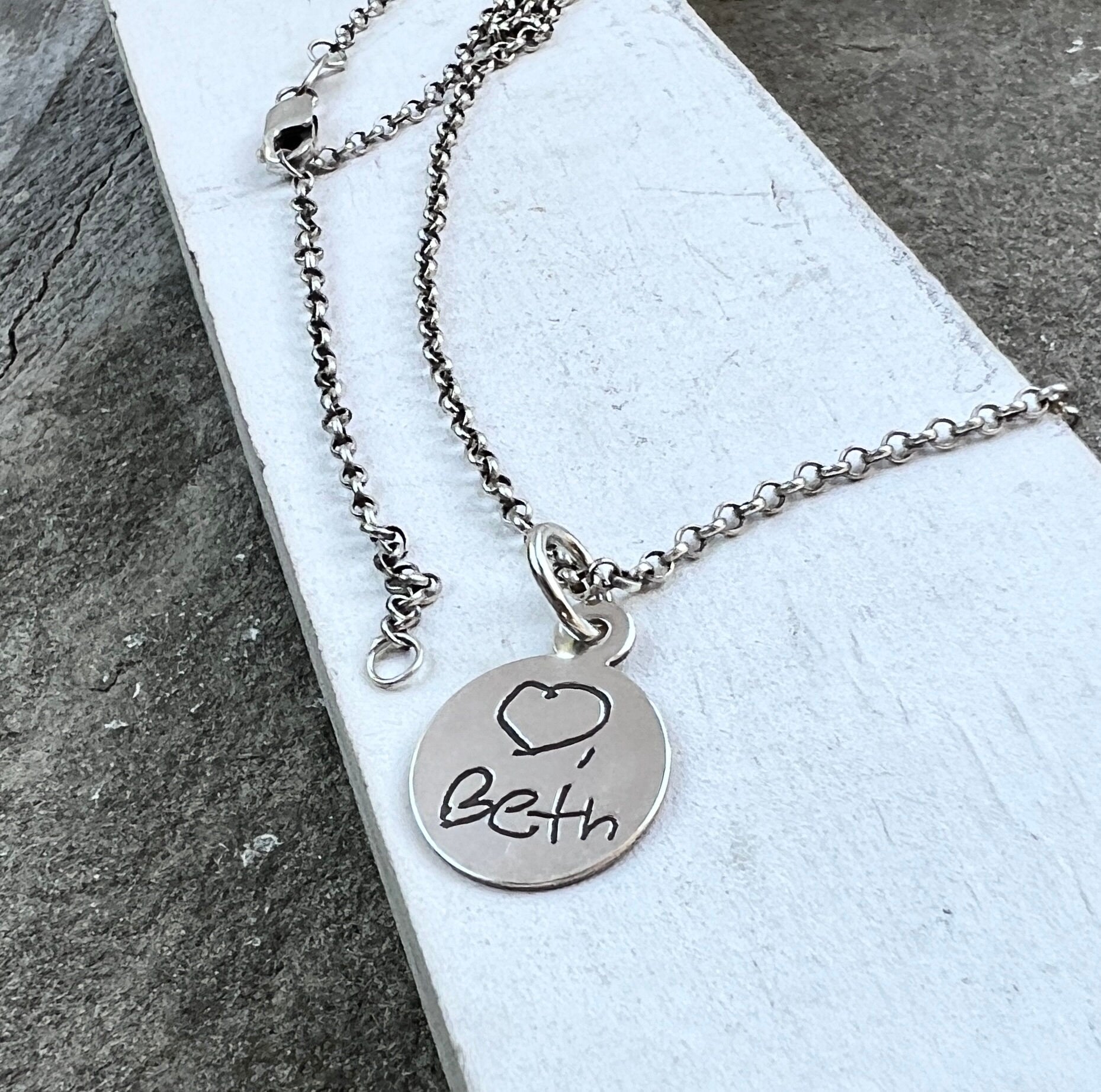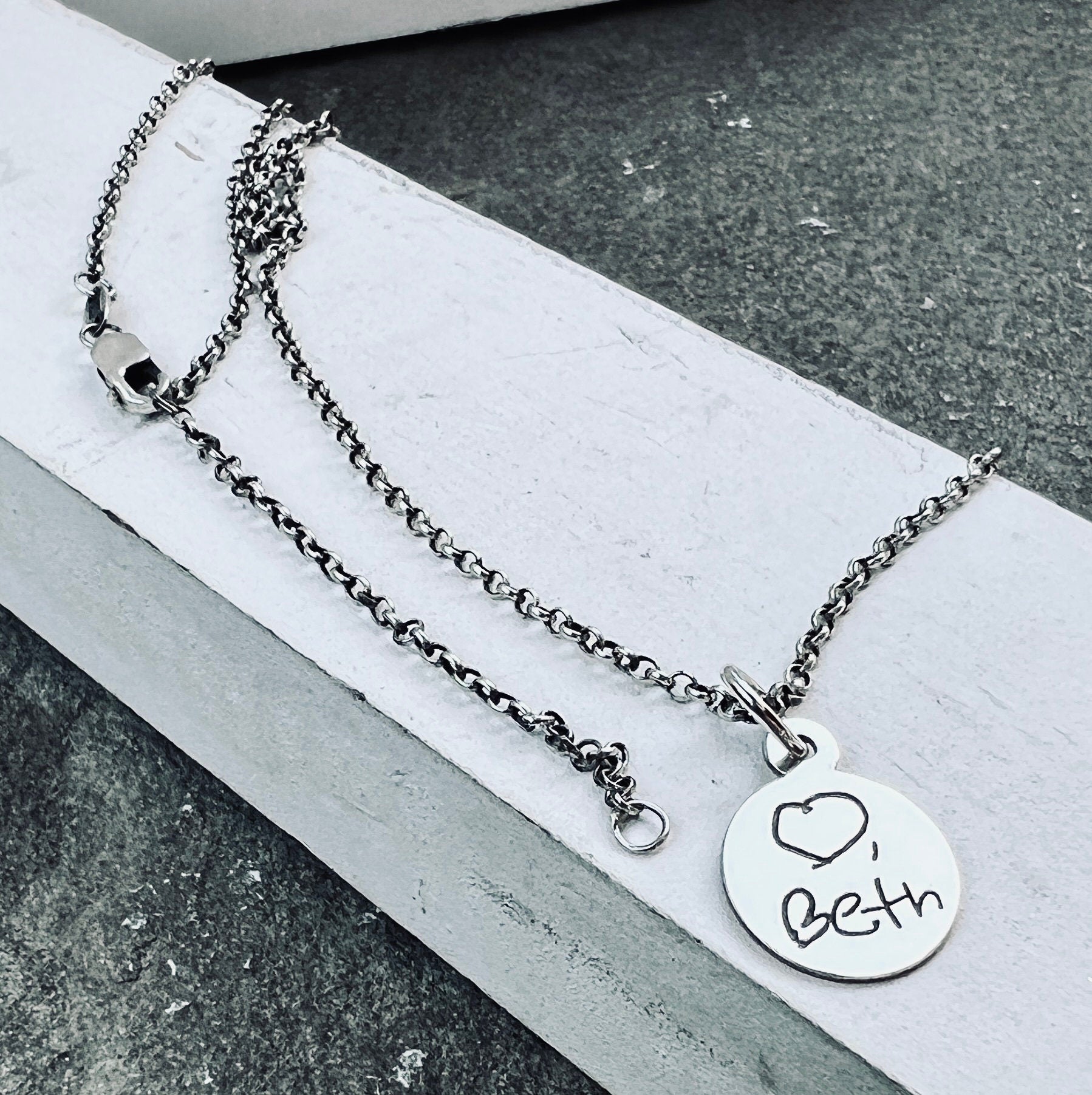 This solid sterling silver handwriting charm holds special meaning. Capture a loved one's handwritten words on a timeless piece. Keep your love with you always and this necklace will bring a smile to your face when you need one the most. ❤️
