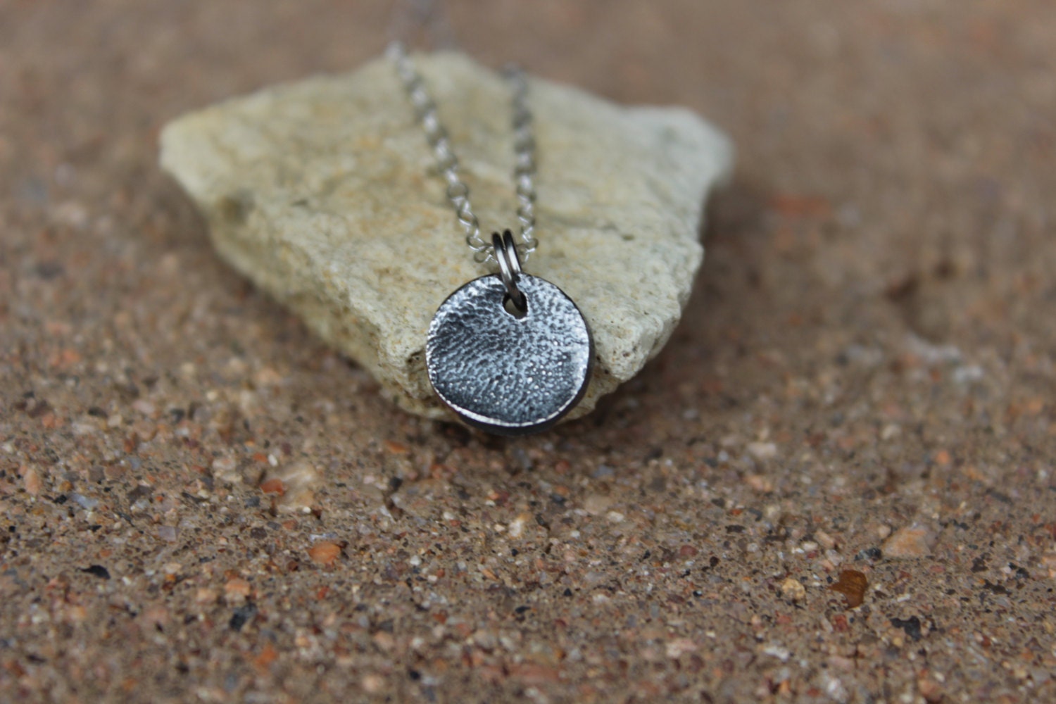 **This listing is for one complete necklace. The cost of shipping the mold and the charm to the buyer is included but the shipping to send the completed fingerprint molds from the buyer to me is NOT included in the cost of shipping. Fine Silver (.999) is a purer form of silver than Sterling Silver (.925).**