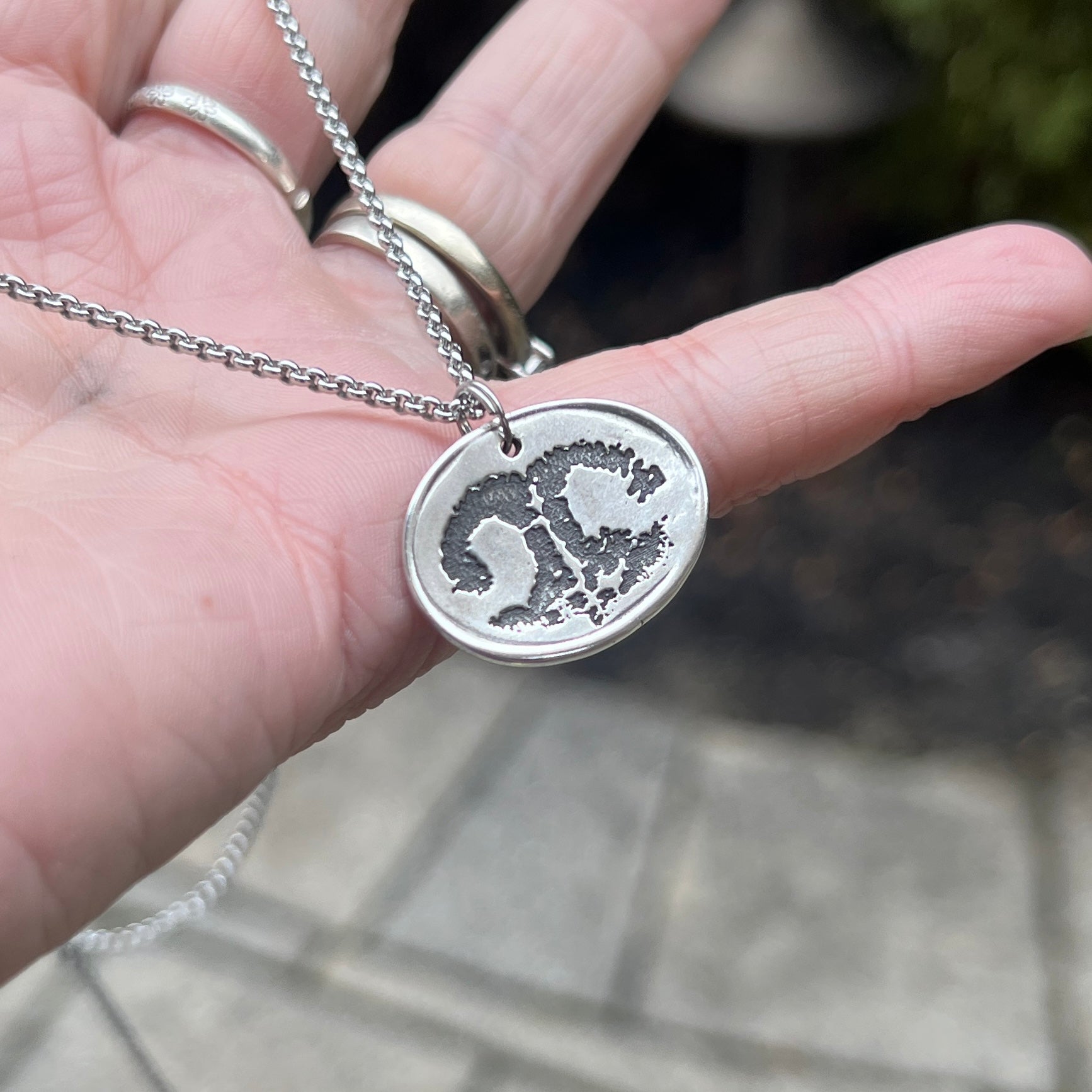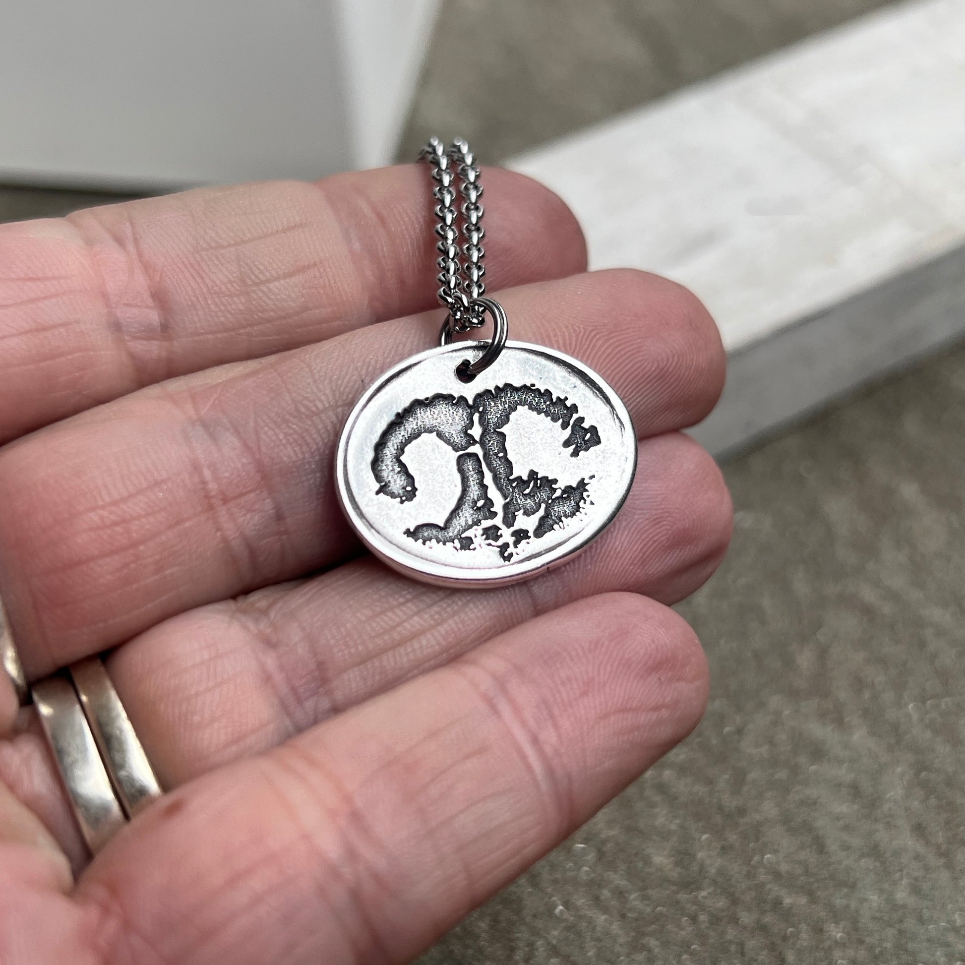 TO CREATE THE PRINTS-> Creating this charm is as simple as taking a photo of your dog's paw (If you have an ink print of your dog’s paw, feel free to message it here or email it to me: shop@carmellasjewelry.com). Don’t have an ink image? Either take a photo of the paw itself or pawprint impression.