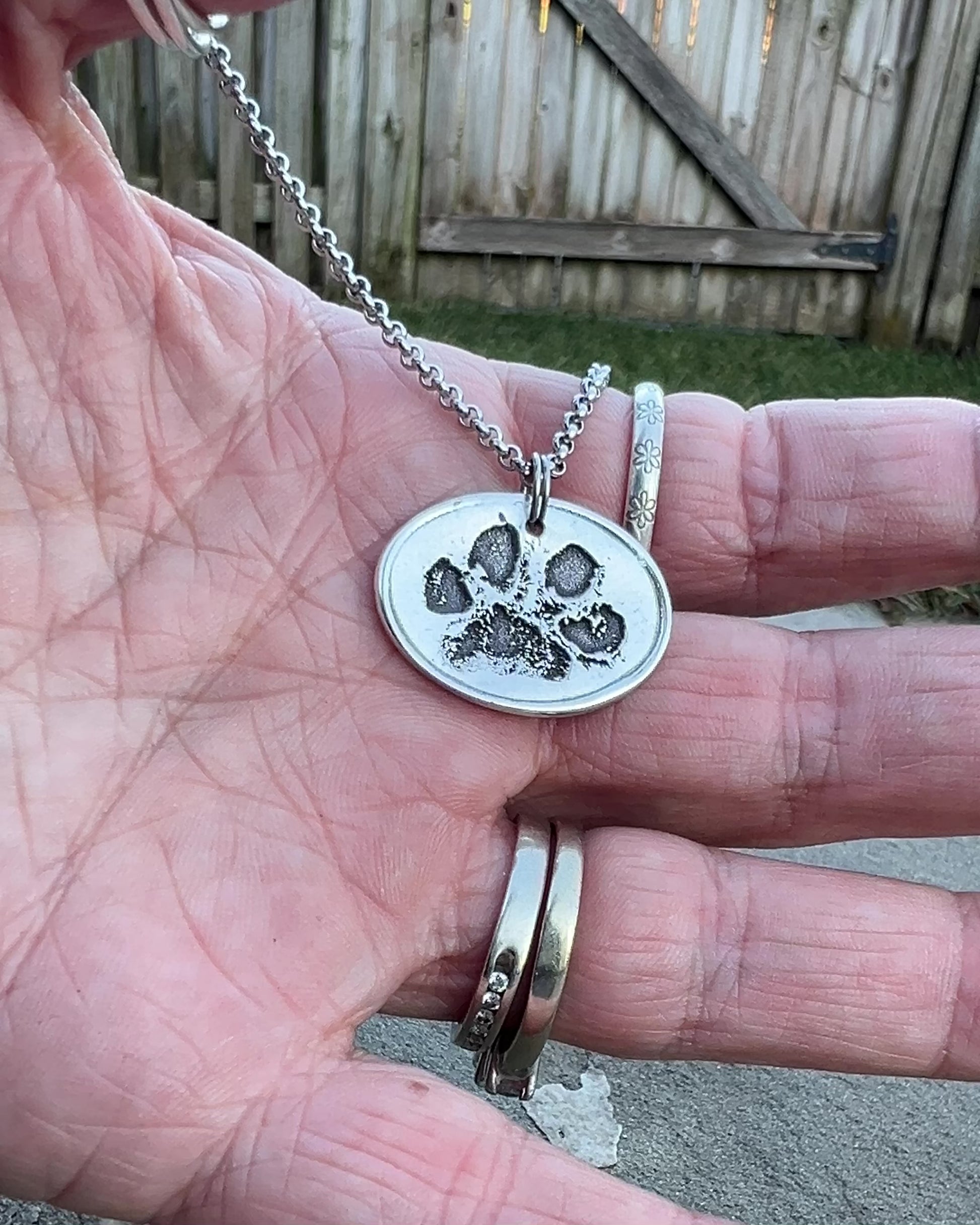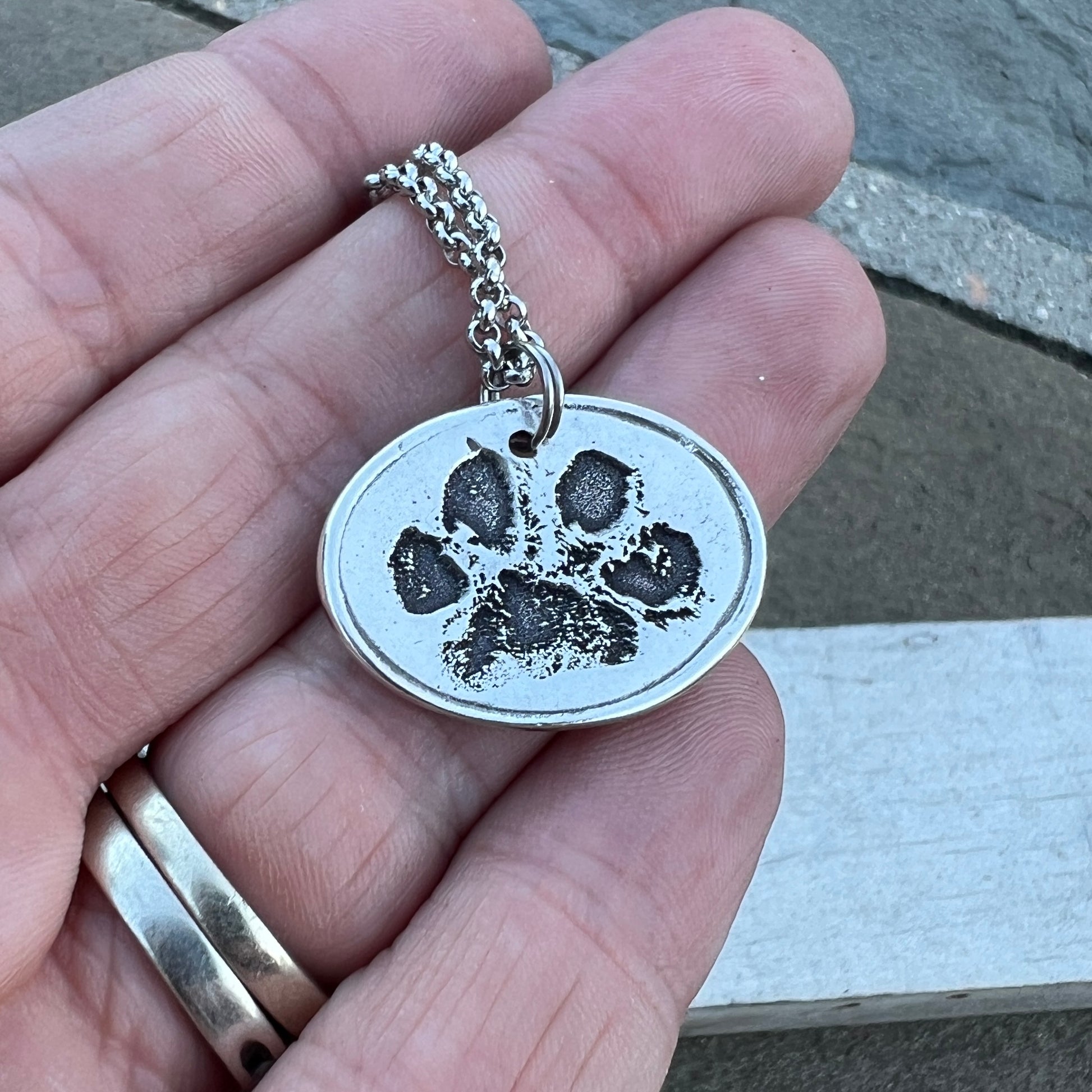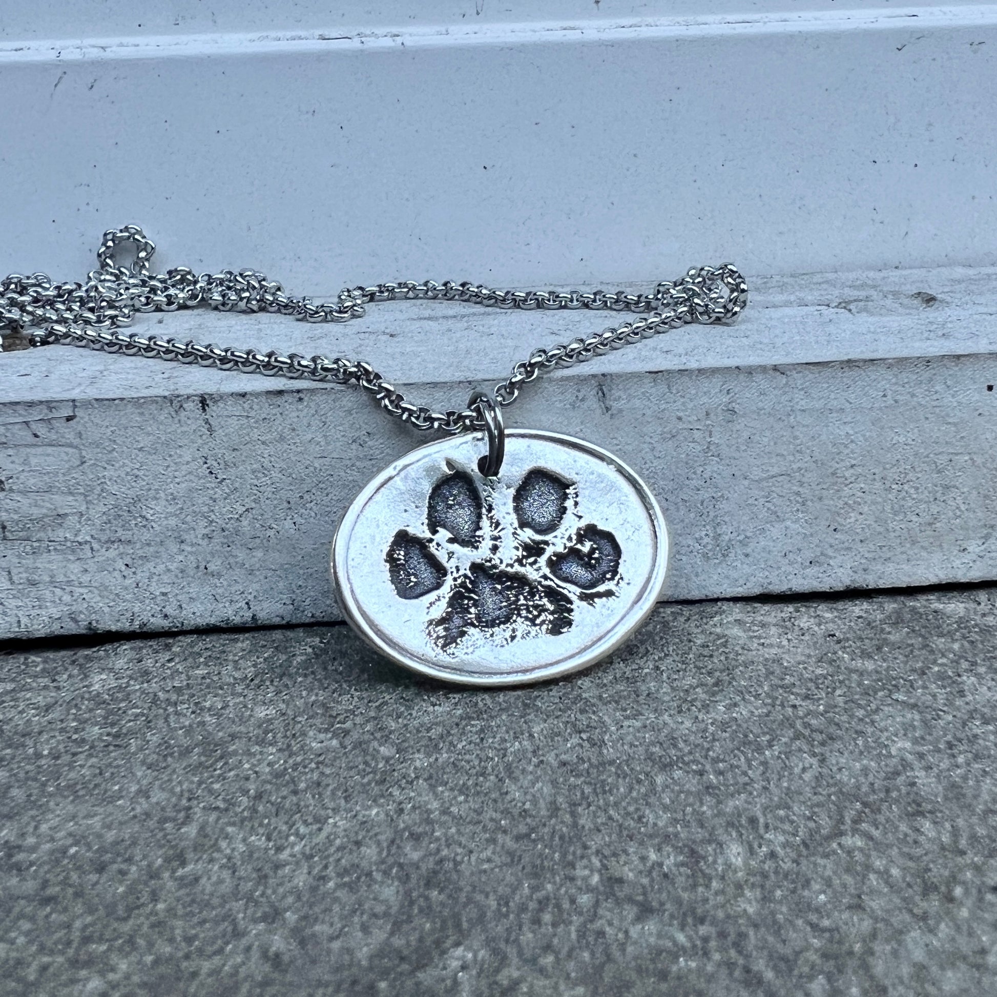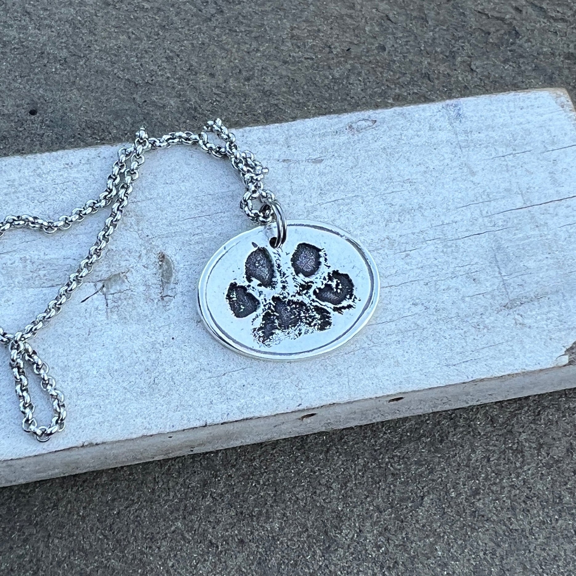 TO CREATE THE PRINTS-> Creating this charm is as simple as taking a photo of your dog's paw (If you have an ink print of your dog’s paw, feel free to message it here or email it to me: shop@carmellasjewelry.com). Don’t have an ink image? Either take a photo of the paw itself or pawprint impression.