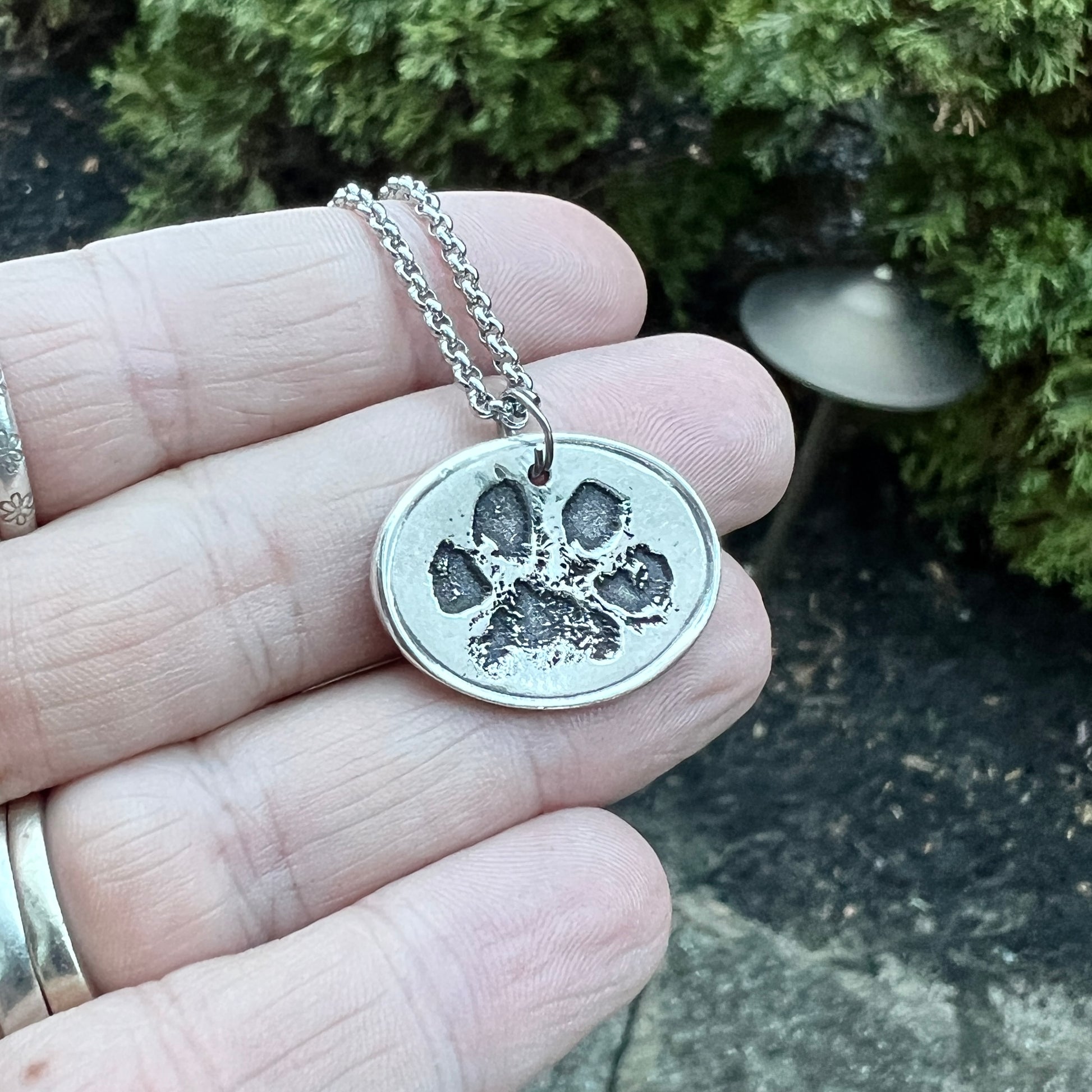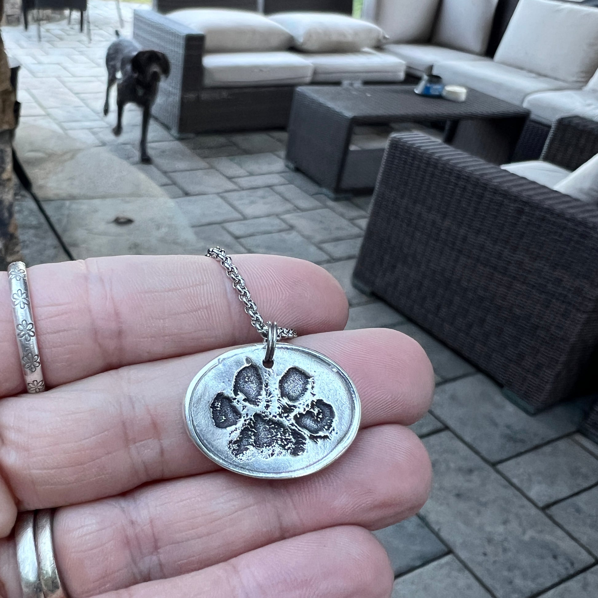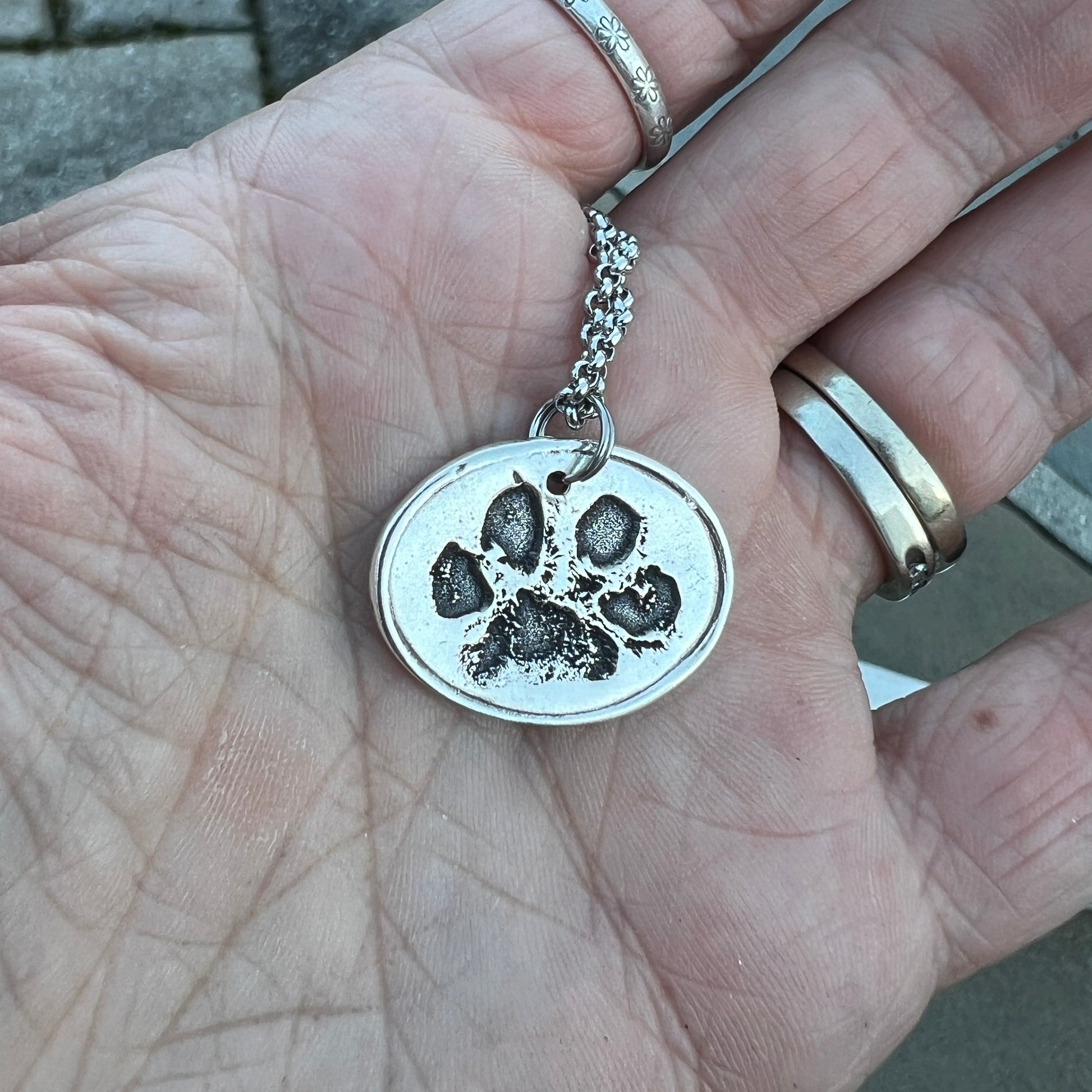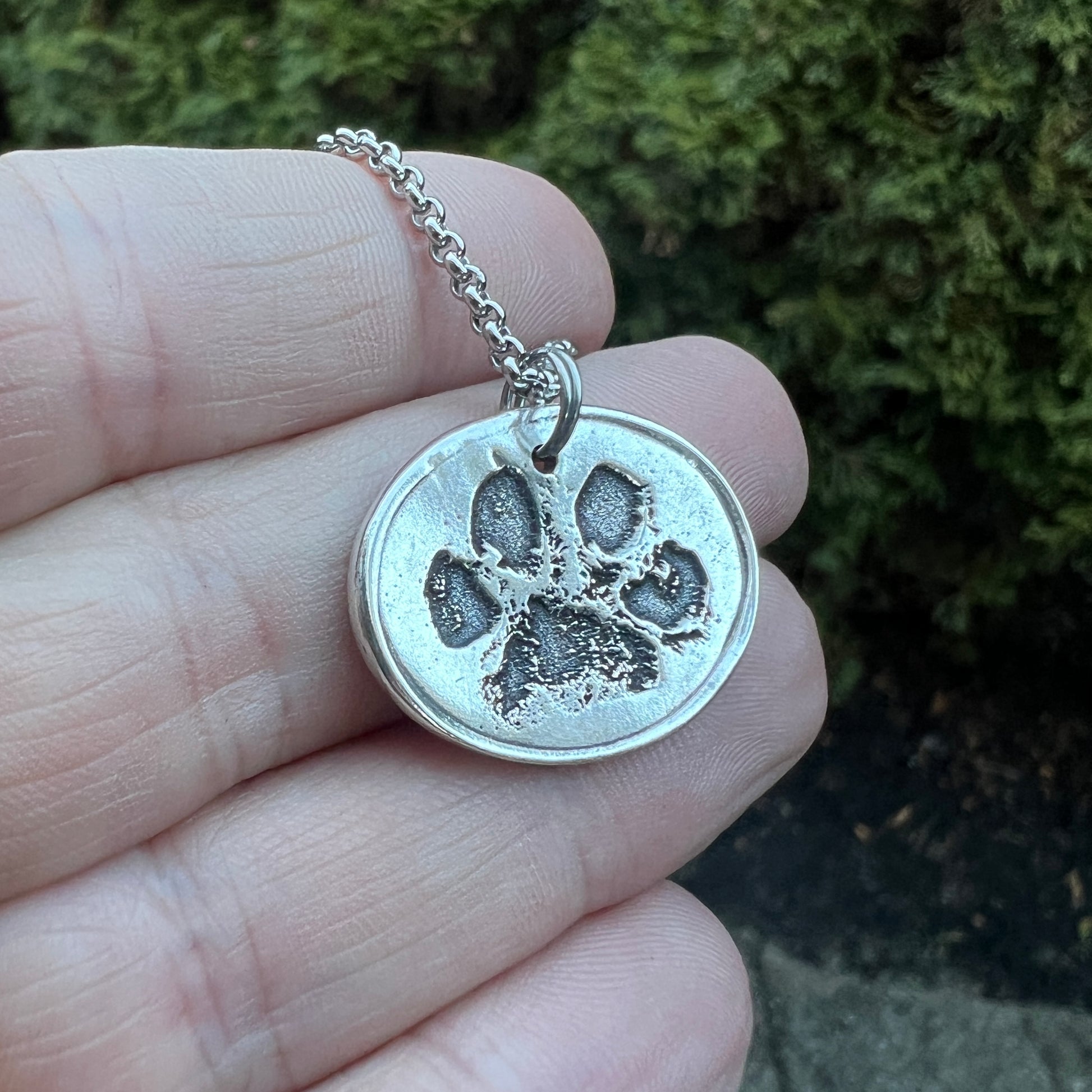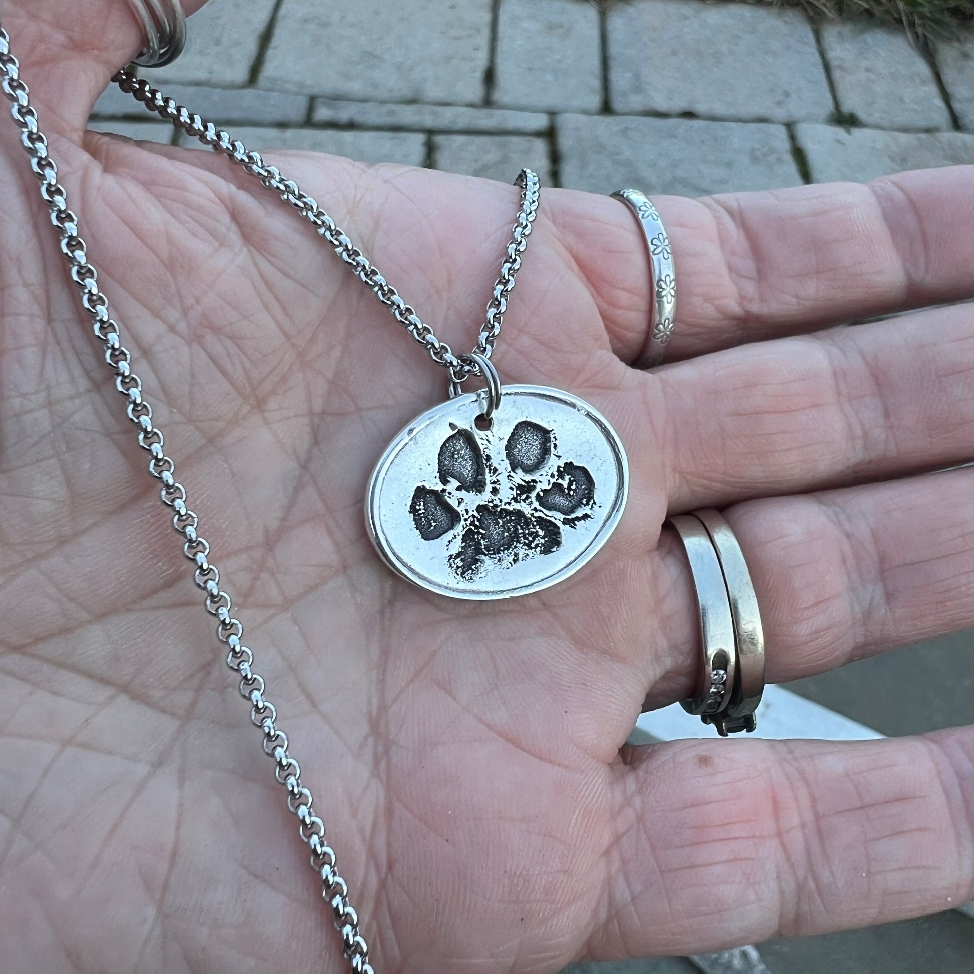 TO CREATE THE PRINTS-> Creating this charm is as simple as taking a photo of your dog's paw (If you have an ink print of your dog’s paw, feel free to message it here or email it to me: shop@carmellasjewelry.com). Don’t have an ink image? Either take a photo of the paw itself or pawprint impression.